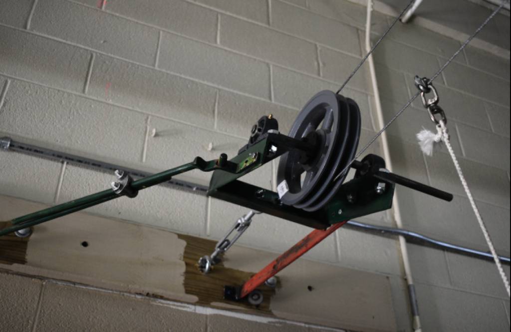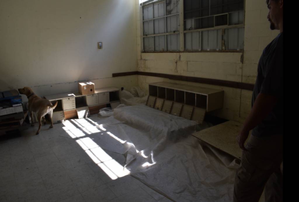 一个专门的建筑物,仓库类型,人工设计改造为训练、测试专用。由层板、木板隔离出约20个小房间,通道顶上有齿轮和传动机关,通过拉绳可控制释放沙袋、铁板等,测试犬对陌生环境、黑暗环境、声响、突然出现物的本能反应。