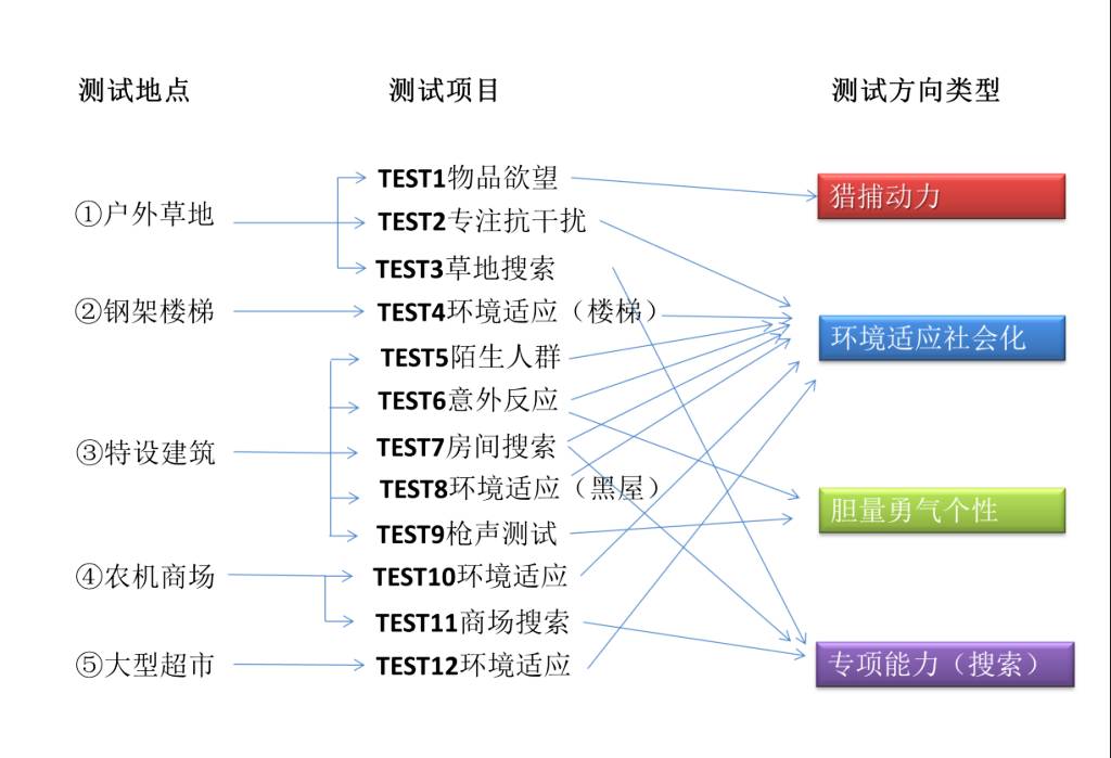 (一)测试内容比较多,犬的测试是的综合性,考核的工作素质包含: