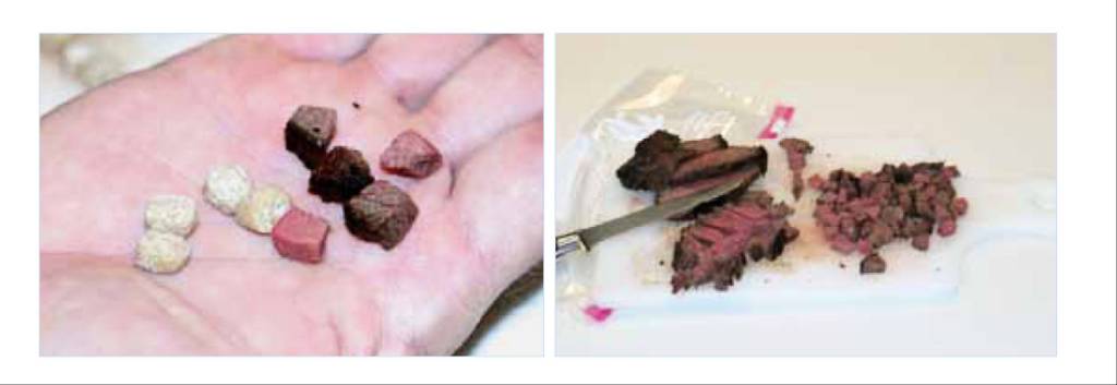 ▲ 在日常和犬接触过程中,测试犬的食物喜好等级,有助于训练中针对性的使用。
